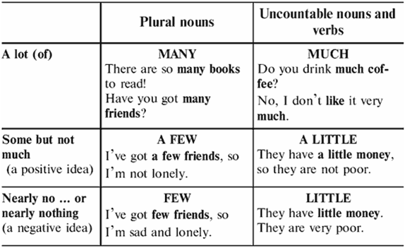 Vamos entender o uso de many / much / few / little: